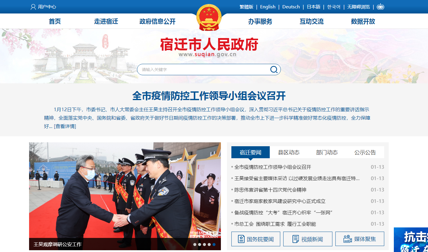 2021-02-13|江蘇省宿遷市人民政府(合作外包開發部分模塊)